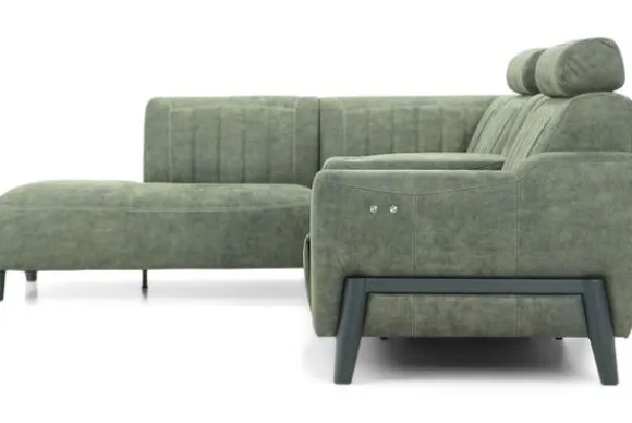 Deze bank wordt standaard uitgevoerd exclusief relaxsysteem en exclusief hoofdsteunen. Je kunt kiezen voor hoofdsteunen en voor één elektrisch relaxsysteem in de zitting naast de armleuning. Het relaxsysteem bestaat uit twee delen, het onderste deel is een losse voetensteun. Je kunt de relax bedienen met de touchknoppen aan de zijkant van de armleuning.