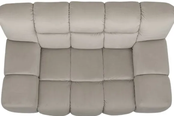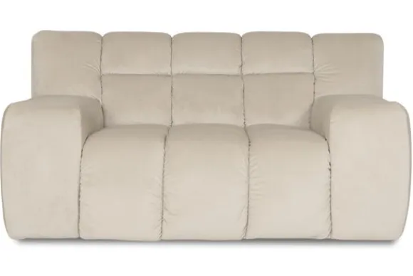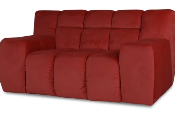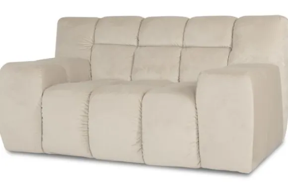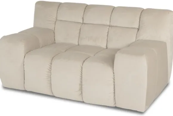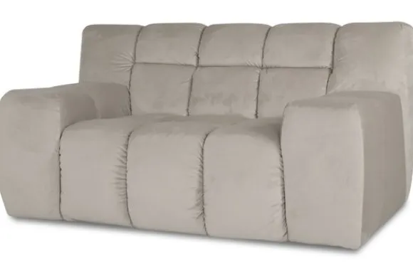 Loveseat Trentino van het merk Moderno is een zitmeubel met geblokt zit- en rugkussen en een zitting die doorloopt tot net boven de grond.