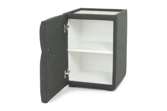 Het nachtkastje heeft twee ruime open vakken die worden afgesloten met een strak vormgegeven deurtje.