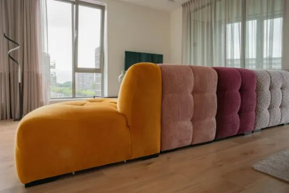 Je kunt kiezen uit verschillende materialen, waaronder rundleder en stoffen als velvet en boucle. Daarnaast is de bank verkrijgbaar in een breed scala aan kleuren. Je kan bij deze bank kiezen om alle elementen in dezelfde kleur te laten stofferen, of juist in verschillende kleuren.