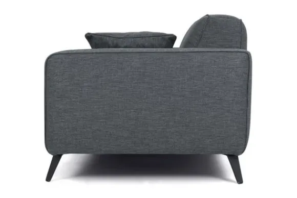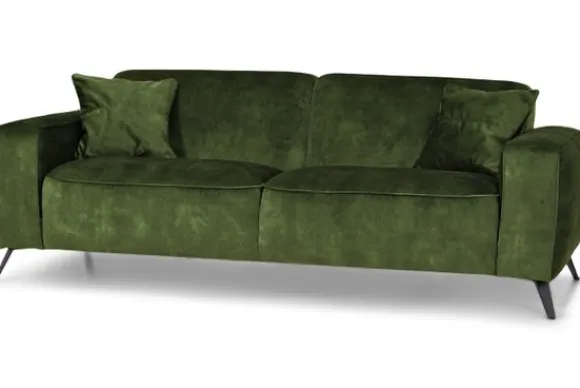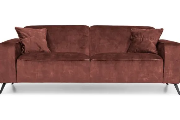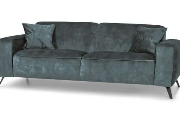 Deze bank wordt standaard uitgevoerd met een metalen poot in de kleur zwart en exclusief sierkussens.