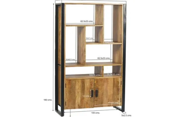 De bergkast is gemaakt van mangohout in combinatie met gecoat staal. Mangohout is een sterke en duurzame houtsoort met een zichtbare houtstructuur. Het stalen frame zorgt voor stabiliteit en een stevige basis.