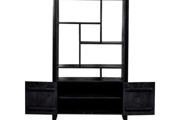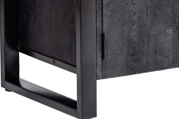Bergkast Norris van het merk Livingfurn is een ruime opbergkast die geschikt is voor gebruik in de woonkamer of eetkamer. Door de combinatie van mangohout en zwart gecoat staal past deze kast goed binnen een modern of industrieel interieur.