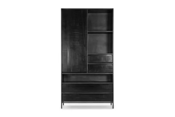 Bergkast Paterno is gemaakt van zwart gebeitst mangohout in combinatie met industrieel staal. Mangohout is een duurzame houtsoort met een fijne nerfstructuur, waarbij ieder meubel een eigen uitstraling heeft. Het materiaal is sterk en geschikt voor dagelijks gebruik.