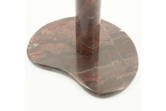 De organische vorm van zowel het tafelblad als de voet zorgt voor een speelse, maar verfijnde uitstraling. De cilindervormige poot geeft het geheel een krachtige basis, terwijl het gladde, gepolijste marmer een luxueuze glans toevoegt. Dit maakt de Rosso bijzettafel perfect als blikvanger naast een bank, fauteuil of als decoratief element in een modern, industrieel of hotel chique interieur.