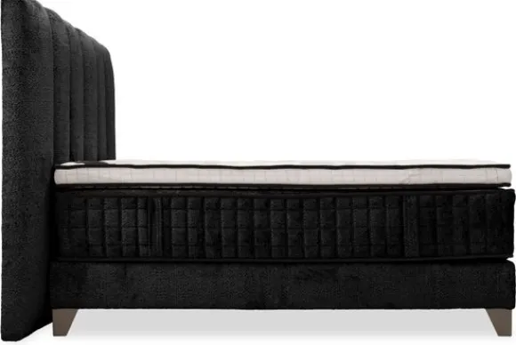 Standaard wordt het bed geleverd met een comfort 1 matras van 25 cm. Voor extra luxe en comfort kun je ook kiezen voor het comfort 2 matras. De boxspring is verkrijgbaar met een vaste box of een elektrische box. Bij de elektrische box ontvang je standaard twee matrassen in twee hoezen, zodat beide zijden onafhankelijk van elkaar kunnen bewegen. Kies je voor de vaste box, dan worden de twee matrassen geleverd in één gezamenlijke hoes. De boxspring wordt standaard geleverd met een Somnio HR koudschuim topper. Optioneel kun je kiezen voor een Somnio gelfoam topper. De topper is standaard één geheel, maar bij een elektrische box kun je ook kiezen voor een praktische splittopper.
