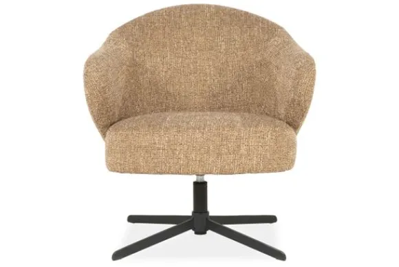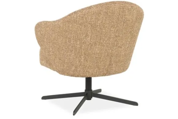 De stevige, zwarte metalen kruisvoet contrasteert subtiel met de lichte bekleding en zorgt voor een modern, industrieel accent. Dankzij de 360 graden draaifunctie biedt deze fauteuil maximale bewegingsvrijheid en flexibiliteit – ideaal in een leeshoek, naast de bank of in een stijlvol kantoor.