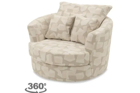 Draaifauteuil Arto van het merk Chloé is een zachte en royale fauteuil met een ronde vorm die meteen uitnodigt om te ontspannen. De 360 graden draaifunctie maakt hem makkelijk in gebruik.