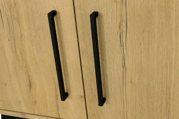 Dressoir Alpha – Marca van het merk Lamulux is uitgevoerd in de kleur Natur. Het meubel staat op een zwart metalen onderstel en heeft smalle zwarte handgrepen die zorgen voor een moderne en strakke uitstraling.