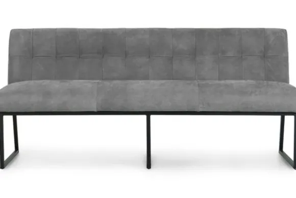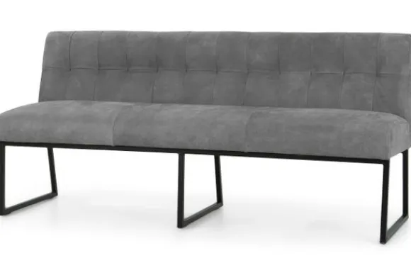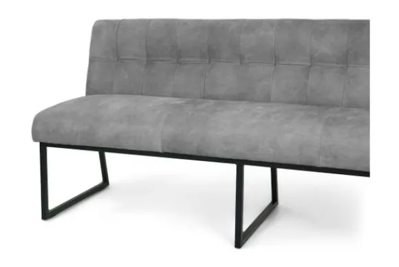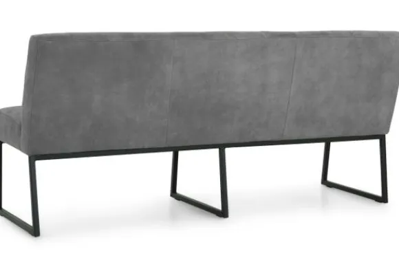 Deze eetbank is voorzien van zwart metalen poten en horizontale intrekkingen in de rugleuning. De Bullock is ook beschikbaar met andere stiksels in de rug. Deze eetbank heeft een simpel, elegant design. Twee handgrepen achter op de rugleuning zijn optioneel.