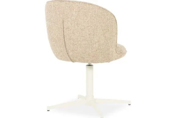 Het witte, poedergecoate metalen onderstel met draaifunctie zorgt voor een lichte, luchtige look en praktische wendbaarheid. De vierpoots kruisvoet geeft een subtiel industrieel randje en staat stevig en stabiel op iedere ondergrond.