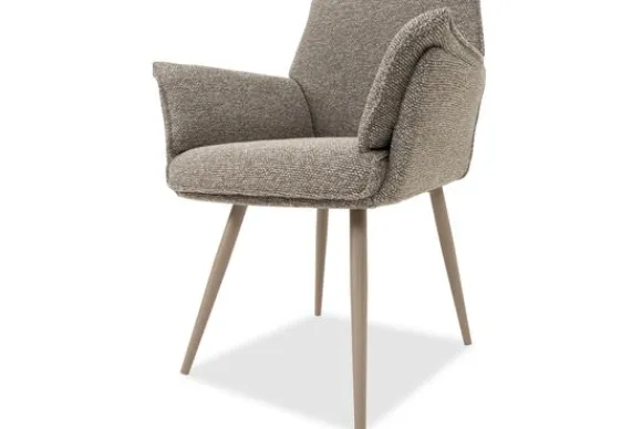Eetkamerstoel Hecate van het merk Elysia is een stoel met comfortabele armleuningen. De vorm past makkelijk bij verschillende tafels en woonstijlen.