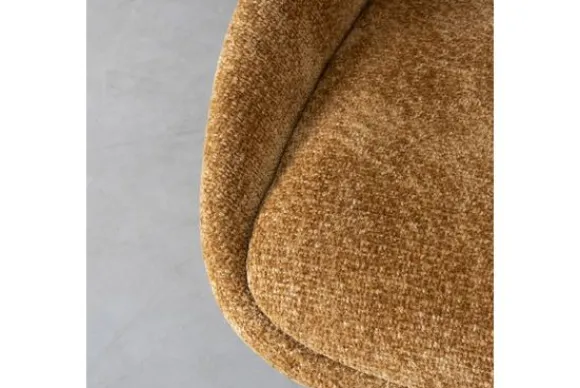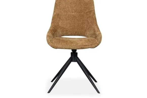 De gebogen rugleuning biedt goede ondersteuning tijdens lange diners. De brede zitting zit comfortabel en de draaifunctie met auto return maakt de stoel praktisch in dagelijks gebruik. De slanke metalen poten zorgen voor stabiliteit en geven de stoel een moderne, luchtige uitstraling.