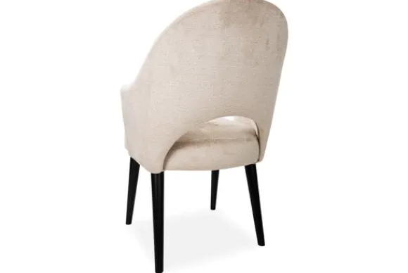 Eetkamerstoel Rohan van het merk Bellagio Seats is verkrijgbaar in alle kleuren en verschillende materiaalsoorten zoals velvet, stof en rundleder. De stoel heeft een zachte en moderne uitstraling tegelijk door de vormen en de materialen die gebruikt zijn voor de stoel. Hierdoor maakt de stoel jouw zithoek compleet binnen meerdere stijlen. Je kunt ook heerlijk stevig zitten in de stoel dankzij de ronde vormen en de armleuningen. De stoel heeft een open gat onderaan de rugleuning en hoekige korte armleuningen.