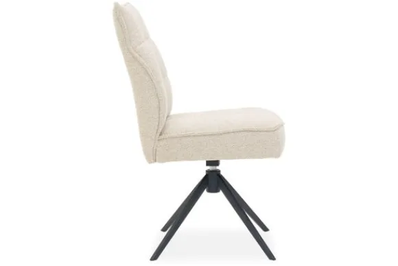 Het stevige, zwart metalen onderstel is niet alleen modern, maar ook functioneel: de zitting is 360 graden draaibaar en voorzien van een handige autoreturn functie, dit betekent dat de stoel automatisch terugdraait naar zijn oorspronkelijke positie zodra je opstaat.