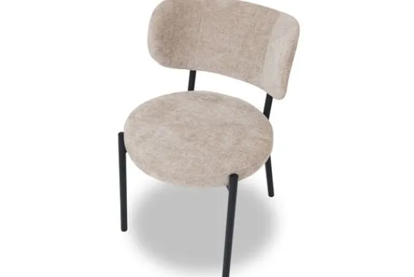 De eetkamerstoel is beschikbaar in de stof Aurora, in de kleuren beige, bruin en taupe.