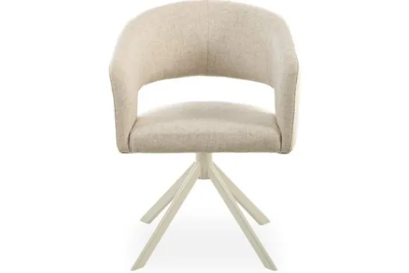 Eetkamerstoel Ekoda van het merk SitSmart is verkrijgbaar in verschillende kleuren. De eetkamerstoel is voorzien van een ronde rugleuning die geleidelijk overloopt in armleuningen. Onderaan de rugleuning zit een opening, dit zorgt voor een ruimtelijke uitstraling. De eetkamerstoel heeft een beige metalen spinpoot met een 360 graden draaisysteem en een auto return. Bij het terugdraaisysteem is de stoel draaibaar en zal daarna uit zichzelf weer terugdraaien naar het midden, hierdoor heb je de vrijheid om jezelf in iedere gewenste richting te draaien.