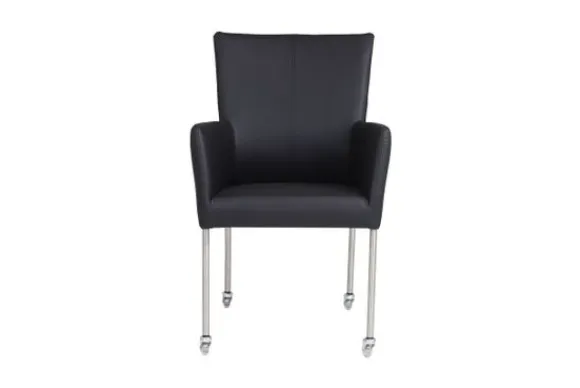 Deze stoel wordt standaard uitgevoerd met RVS poten en skate wieltjes.