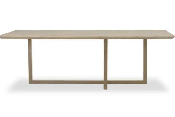 Onder het blad ontvouwt zich een krachtig, geometrisch onderstel dat in zijn eenvoud een moderne twist geeft aan het ontwerp. Dit onderstel is aanpasbaar in diverse modellen en kleuren, net als het tafelblad, waardoor Hector zich naadloos laat integreren in verschillende interieurstijlen. In een scandinavisch interieur benadrukt hij de liefde voor licht hout, natuurlijke materialen en serene eenvoud. Tegelijk komt hij ook prachtig tot zijn recht in een industrieel decor, waar het strakke lijnenspel van het onderstel contrasteert met de warme uitstraling van het eikenhout.
