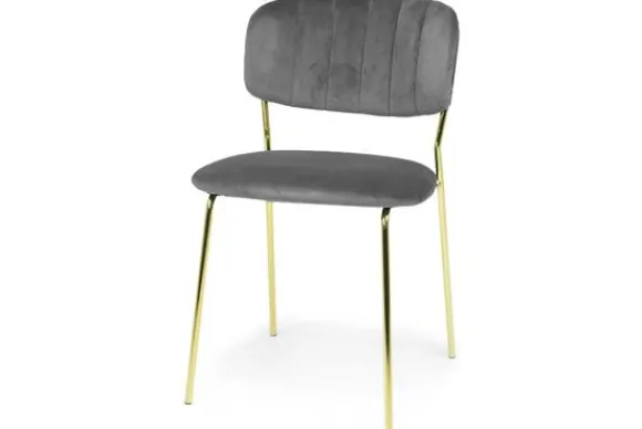 Eetkamerstoel Cate – grijs is beschikbaar in verschillende kleuren. Deze stoelen zijn bekleed met velvet. Velvet heeft een mooie vleug, wat zorgt voor een chique en hippe uitstraling. Verder is deze stof makkelijk te reinigen, slijtvast en goed bestendig tegen bijvoorbeeld nagels van huisdieren. Deze stoel heeft een luchtige uitstraling door het smalle frame en door de open stukken tussen de zitting en de rugleuning. In de rugleuning zitten verticale stiksels.