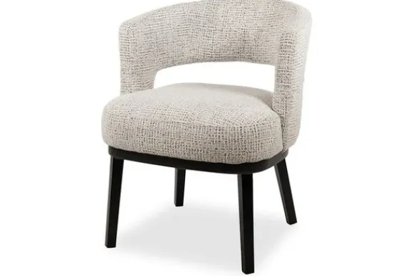 Outlet eetstoelen Salt ’n Pepper van het merk Mysons is een elegante en comfortabele toevoeging aan je eetruimte. Met zijn afgeronde rugleuning, zachte stof en vaste zwarte poten straalt deze stoel rust en verfijning uit.