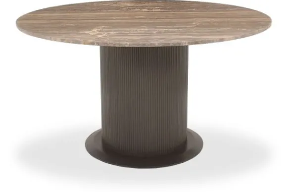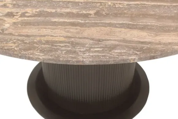 Eettafel Russo 214320 van het merk Richmond Interiors is een stijlvolle blikvanger die kracht en eenvoud samenbrengt. Het ronde blad van travertin straalt natuurlijke warmte uit met zijn levendige kleurschakeringen en subtiele adertekening. De vorm nodigt uit tot lange avonden tafelen en maakt elk interieur direct gezelliger.