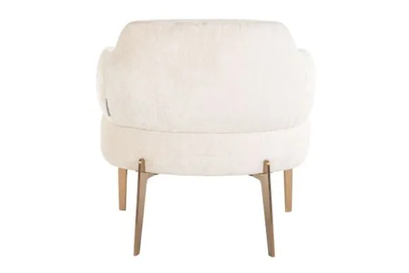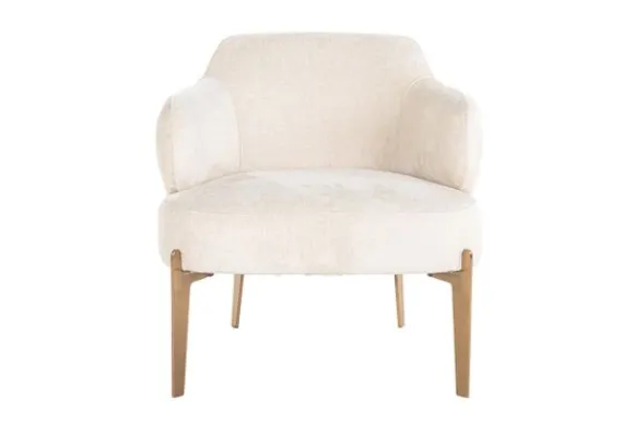 Fauteuil Venus 211058 White Chenille van het merk Richmond Interiors is gestoffeerd met Bergen 900 White Chenille. Chenille is makkelijk te reinigen. Verder heeft deze stof een mooie glans en door de vezels ziet de stof er bij elke lichtinval anders uit. Tevens is de stof zeer comfortabel en zacht, wat zorgt voor een chique en warme uitstraling. De fauteuil heeft een ronde rugleuning die doorloopt in armleuningen, dit zorgt voor een comfortabele zit. De fauteuil heeft brass (staal in mat goud) poten.