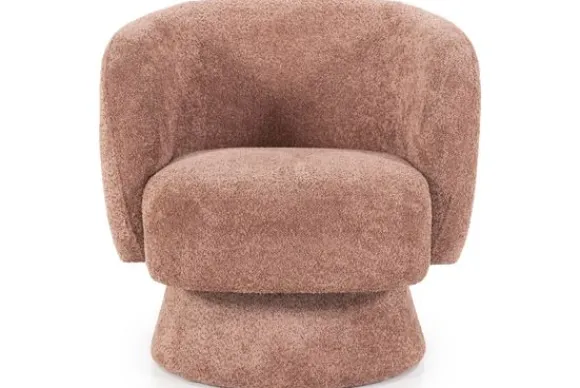 Fauteuil Balou 230177 van het merk By Boo is gemaakt van polyester. Deze uitvoering is in de kleur terracotta, maar de fauteuil is ook verkrijgbaar in taupe en beige. Door de zachte stof is de fauteuil super comfortabel en perfect om in te ontspannen. Dit is een draaifauteuil.