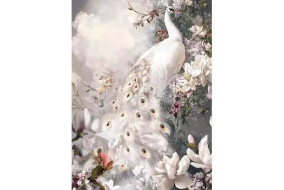 Glasschilderij Witte pauw 0801203D-040 van het merk Ter Halle is een sierlijk en opvallend kunstwerk. De witte bloemen met de elegante pauw zorgen voor een chique interieur.
