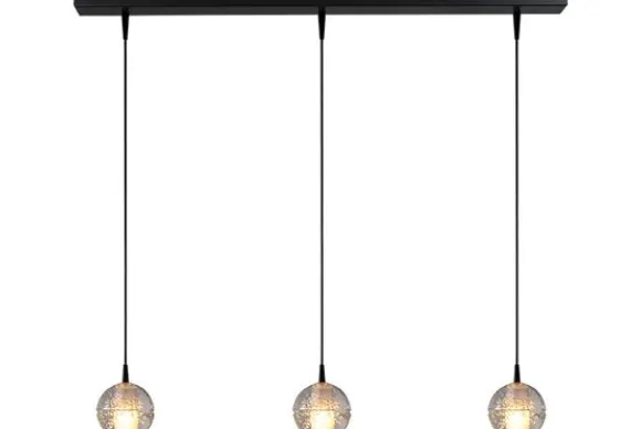 Hanglamp 2121-05-173-100-3 Bubbles van het merk Masterlight is een eenvoudige maar luxe lamp door de glazen lampenkap waarin luchtbellen zichtbaar zijn. De hanglamp heeft drie transparante bubbellampenkappen met een diameter van 10 centimeter en de lamp is in de hoogte verstelbaar tot een maximale lengte van 170 centimeter. De lampenkap heeft aan de binnenkant een bulletvormige lichtbron wat voor een prachtig effect zorgt. Hang de hanglamp boven je eettafel, salontafel of in de hal… De lichtbron is inclusief bij deze lamp en is dimbaar met een externe dimmer.