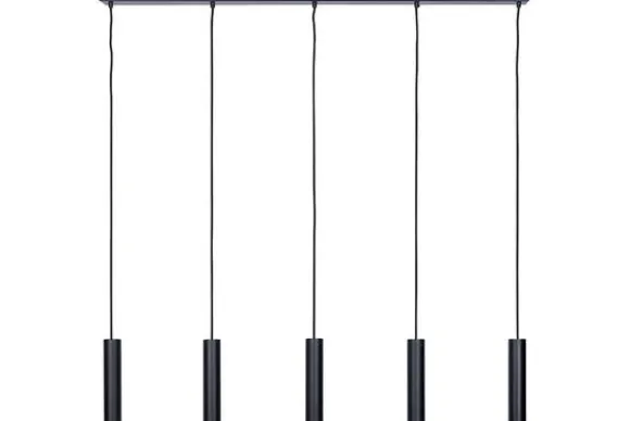 Hanglamp 3150-9005 Salerno van het merk Dijkos-Ztahl is een handgemaakte lamp. De lamp heeft zwart stalen buizen aan een gestoffeerd snoer, dit zorgt voor een industriële uitstraling. De lamp heeft vijf GU10 fittingen, perfect voor LED spotjes. Met een compitabele lichtbron is de lamp dimbaar.