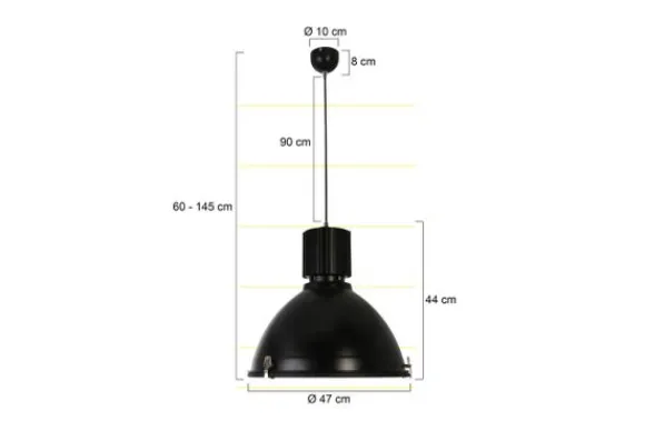 Hanglamp Warbier 7277ZW van het merk Steinhauer is een stoere, industriële hanglamp. De hanglamp is voorzien van een E27 (grote) fitting en geschikt voor lichtbronnen tot maximaal 60 Watt. De kap heeft een diameter van 47 centimeter en een hoogte van 44 centimeter. De hanglamp is tijdens montage in hoogte te verstellen tot maximaal 145 centimeter. De hanglamp is dimbaar middels een externe dimmer en bijpassende lichtbron.