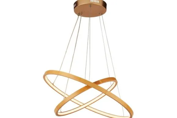 Hanglamp 75032-2NA Eternity pendant van het merk Searchlight is een lamp die bestaat uit twee ringen gemaakt van bamboe en goudgekleurd metaal. Deze lamp heeft LED-verlichting aan de binnenkant van de ringen zitten. Er is ook een grotere versie van deze lamp verkrijgbaar met drie ringen.