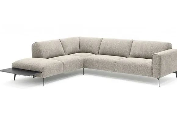 Hoekbank Romi II van het merk Gabanna is beschikbaar in alle kleuren en in verschillende materiaalsoorten zoals stof, velvet en rundleder. Je kunt kiezen uit diverse afmetingen en pootmogelijkheden. De Romi heeft een strakke uitstaling door de vaste kussens. De kussens van de Romi zijn gevuld met luxe rendementschuim, maar er kan ook voor koudschuim gekozen worden. Koudschuim wordt ook wel High Resilience genoemd. High Resilience betekent “hoge veerkracht”, koudschuim is dus een schuim met hoge veerkracht en staat ook bekend om zijn lange levensduur. Deze kussens worden ondersteund door hoogwaardige nosagvering en de bank heeft een erg sterk, houten frame. De naden zijn gevouwen en zorgen voor een leuk detail. Bankstel Romi wordt standaard uitgevoerd met poten van 17 cm hoog, maar je kunt ook kiezen voor poten van 19 cm hoog. De zithoogte van de bank is standaard 46 cm en wordt dan 48 cm.