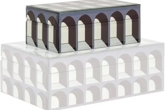 Juwelenbox Vaya Klein 212163 van het merk Richmond Interiors heeft een unieke look door de bogen die op de zijkanten van de juwelenbox zijn afgebeeld. De juwelenbox is gemaakt van glas en metaal en ook verkrijgbaar in een groter formaat.