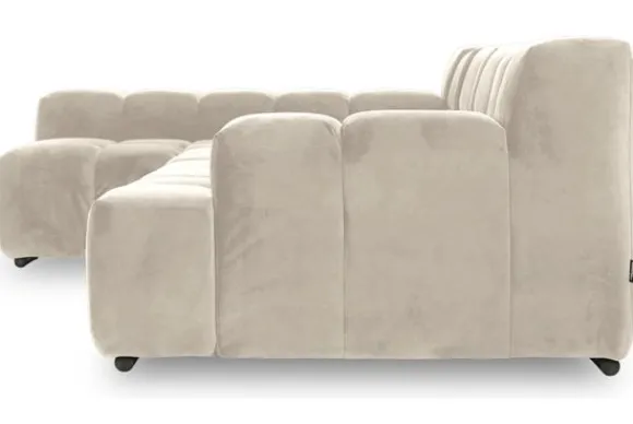 Dit bankstel is samen te stellen in vele afmetingen en verschillende opstellingen, of kies uit een van de standaard opstellingen. Ook kan je kiezen uit mat zwarte of chroom pootjes en zijn er bijpassende hoofdsteunen, sier- en lendekussens en poefjes beschikbaar. Deze worden uitgevoerd in dezelfde stof als de bank.