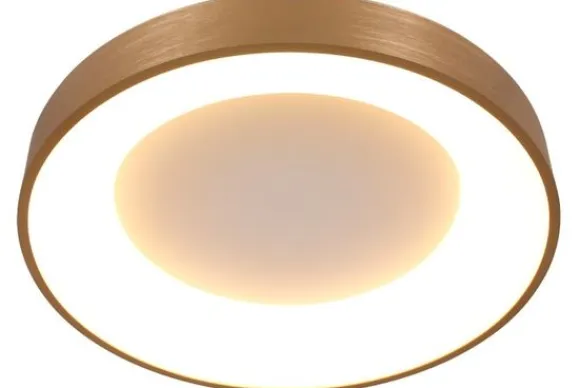Plafondlamp Ringlede 3086GO van het merk Steinhauer is een moderne goudkleurige lamp en vervaardigd uit metaal en kunststof. De lamp is voorzien van een, vervangbare, LED-module van 30 Watt met 2700 Kelvin en een lichtopbrengst van 2800 Lumen. De Ringlede beschikt over een dimbare driver, dit betekend dat de lamp dimbaar is middels een muurdimmer (niet meegeleverd). De lamp heeft een diameter van 30 cm en is 9 cm hoog.