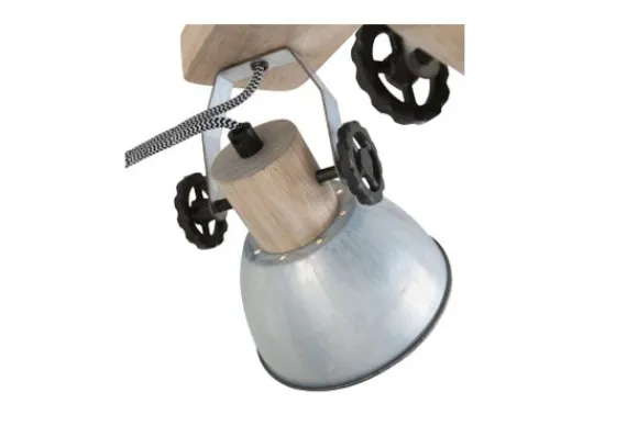Plafondlamp 7969NI Gearwood Mexlite van het merk Steinhauer is een grijze 2-lichts plafondlamp vervaardigd uit metaal en hout. Door de houten accenten en grote verstelwielen heeft de plafondlamp een stoere en industriële uitstraling. De lamp is voorzien van een E27 (grote) fitting en geschikt voor lichtbronnen tot 40 Watt. De kappen zijn draai- en kantelbaar door middel van de verstelwielen, handig om specifieke delen van de ruimte te verlichten. De diameter van de kap is 15 centimeter. Een leuke bijkomstigheid is dat de lamp dimbaar is middels een externe dimmer en dimbare lichtbron.