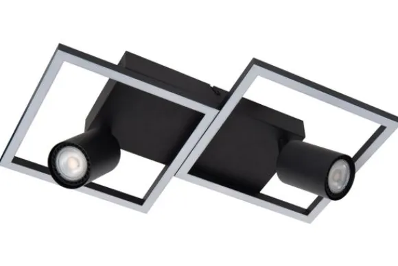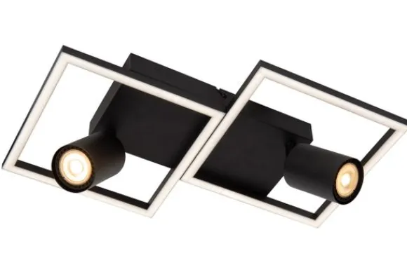 Plafondlamp Arianne van het merk Lucide is een meesterlijke combinatie van strakke lijnen en functionele spotverlichting. Het ontwerp speelt met twee geometrisch gevormde frames in aluminium die een zacht, diffuus licht uitstralen. Binnenin zorgen twee draaibare GU10-spots voor een gerichte lichtbundel, ideaal om specifieke accenten in je interieur uit te lichten. De lichtbronnen zijn apart verkrijgbaar.