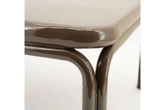 De afgeronde hoeken en het glanzende metalen frame geven Salontafel Zilo een vloeiende en luchtige uitstraling.