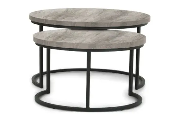 Salontafelset Rutger Calestruzzo van het merk Lamulux is verkrijgbaar in twee afmetingen en uitgevoerd in diverse houtkleuren, waaronder de kleur Grey Oak. De tafels zijn voorzien van een metalen poot en een tafelblad met een ijzersterke Lamulux toplaag met melamine.