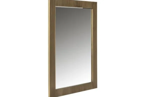 Spiegel 211121 van het merk Richmond Interiors is een elegant decorstuk dat luxe en verfijning uitstraalt. De spiegel is voorzien van een opvallende lijst met verticale ribbels in een warme brass (staal in matgoud) afwerking. Brass is een legering van koper en zink, dat vervolgens wordt afgewerkt met een geborsteld effect wat zorgt voor een matte afwerking. Dit unieke ontwerp voegt diepte en structuur toe en vangt het licht op een verfijnde manier, waardoor het een dynamische blikvanger wordt in elke ruimte.