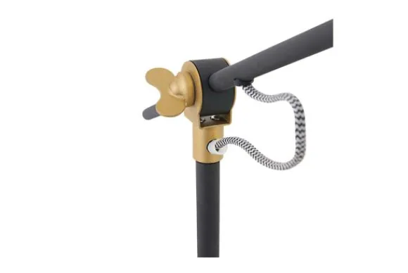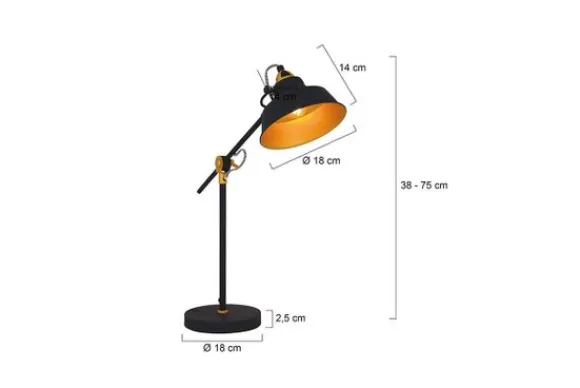 Tafellamp 1321ZW Mexlite Nové van het merk Steinhauer is een opvallende en moderne tafellamp. De tafellamp beschikt over een E27 fitting en is geschikt voor lichtbronnen tot maximaal 40 Watt. De lamp en de kap zijn draaibaar en kantelbaar. Hierdoor kun je zelf bepalen waar je het licht op laat schijnen. Door de zwarte kleur met de gouden details te combineren komen industrieel en modern mooi samen. De tafellamp wordt inclusief zwart/wit snoer met schakelaar geleverd.