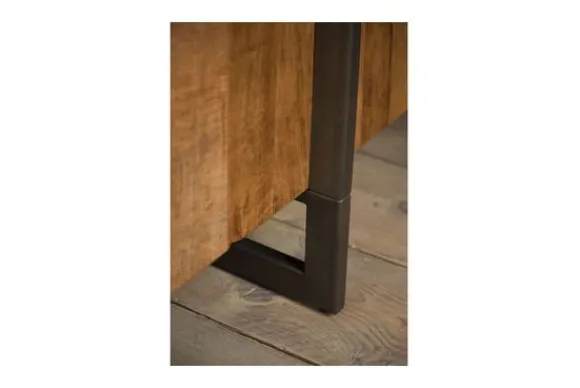 Tv-meubel Ora MX 0033 van het merk Tower Living is gemaakt van gerecycled teakhout in combinatie met metaal. Het metaal heeft een unieke koper kleurige afwerking door het uitgebreide proces waarbij er met de hand 7 lagen koper poeder wordt aangebracht. Wat deze meubelserie bijzonder maakt is de poot die doorloopt in het handvat. Alle deuren en lades zijn te openen door middel van een push to open-systeem. Het tv-meubel heeft een open vak, één lade en twee deuren, genoeg opbergruimte dus!