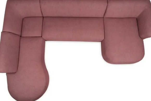 Bankstel Morgana van het merk Inmeubels is een unieke designbank met ronde vormen en een zitting die doorloopt tot net boven de grond.