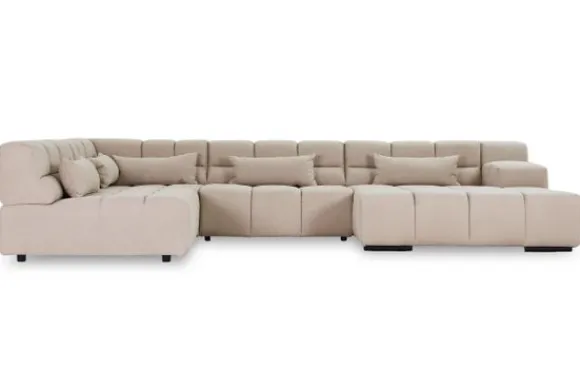 Dit bankstel is samen te stellen in vele afmetingen en verschillende opstellingen, of kies uit een van de standaard opstellingen. Ook kan je kiezen uit mat zwarte of chroom pootjes en zijn er bijpassende hoofdsteunen, sier- en lendekussens en poefjes beschikbaar. Deze worden uitgevoerd in dezelfde stof als de bank.