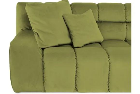 Je kunt kiezen uit verschillende materialen, waaronder stoffen als velvet en boucle. Daarnaast is de bank verkrijgbaar in uiteenlopende kleuren.