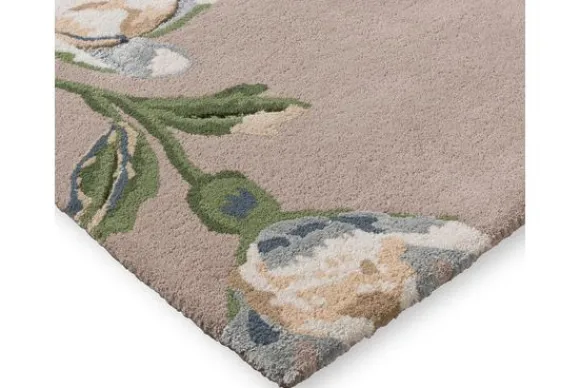 Vloerkleed Summer Palace Truffle Seaspray van het merk Laura Ashley is een rechthoekig vloerkleed dat pure elegantie uitstraalt. De zachte taupe ondergrond vormt een dromerig canvas waarop een sierlijke vogel tussen bloesemtakken tot leven komt.