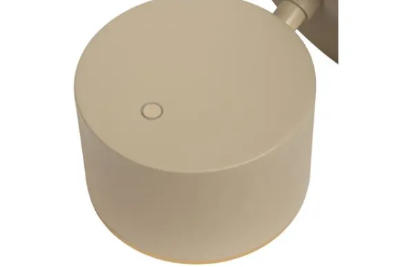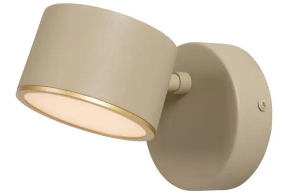Wandlamp Gian van het merk Lucide combineert functionele helderheid met een ingetogen, luxe uitstraling. Het compacte design in zachte zandtint ademt rust en moderniteit, terwijl de subtiele gouden rand rond de kap een stijlvol accent toevoegt.