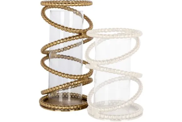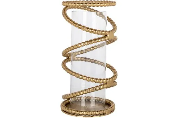Windlicht Jaden 211538 groot van het merk Richmond Interiors is gemaakt van goudkleurig aluminium. Het windlicht heeft een bijzondere uitstraling door het ketting-design rondom de glazen koker. Met een mooie kaars of waxinelicht is dit windlicht een echte eyecatcher in je interieur. Tip: voor de complete look is het windlicht ook in een kleinere variant beschikbaar.